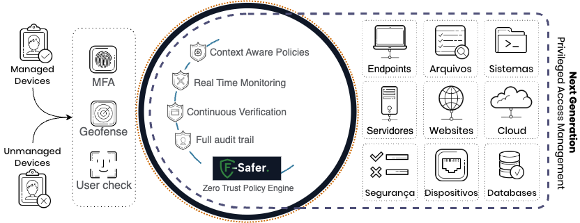 Para garantir a identidade e triangular o acesso com a permissāo, somos a plataforma de PAM com a maior possibilidade de validaçāo MFA disponivel no mercado.